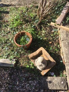 We have set to on the overgrown herb garden my mother helped me set up. Ivy had sneaked through the side from the shed and was threatening even the lavender bush. It will take a while to regrow things but we’ve chopped back a curry plant – Lovely but not a hugely helpful herb as we’ve not been adding it to our curries – but the rosemary is huge too, and hopefully clipping the gooseberry bush will improve the crop.