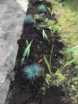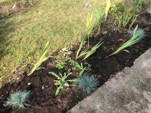 It was cheaper to buy it this morning as it was in tiny little pots. As you can see, patience and vision will be needed to imagine it as cushiony clumps of blue grass in years to come…