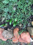 It might be freezing out there but I spotted some new growth! Okay some of it is weeds but if you’ll bear with me, there are also signs of beauty to come. I spent a lot of money on bulbs and I think it’s paying off. I ran out mid-shower today and snapped a few shots and I think it can safely be said we are anticipating some glorious displays. I also think the vigilance of our squirrel-dog (border collie) kept the corm and bulb-munchers at bay!