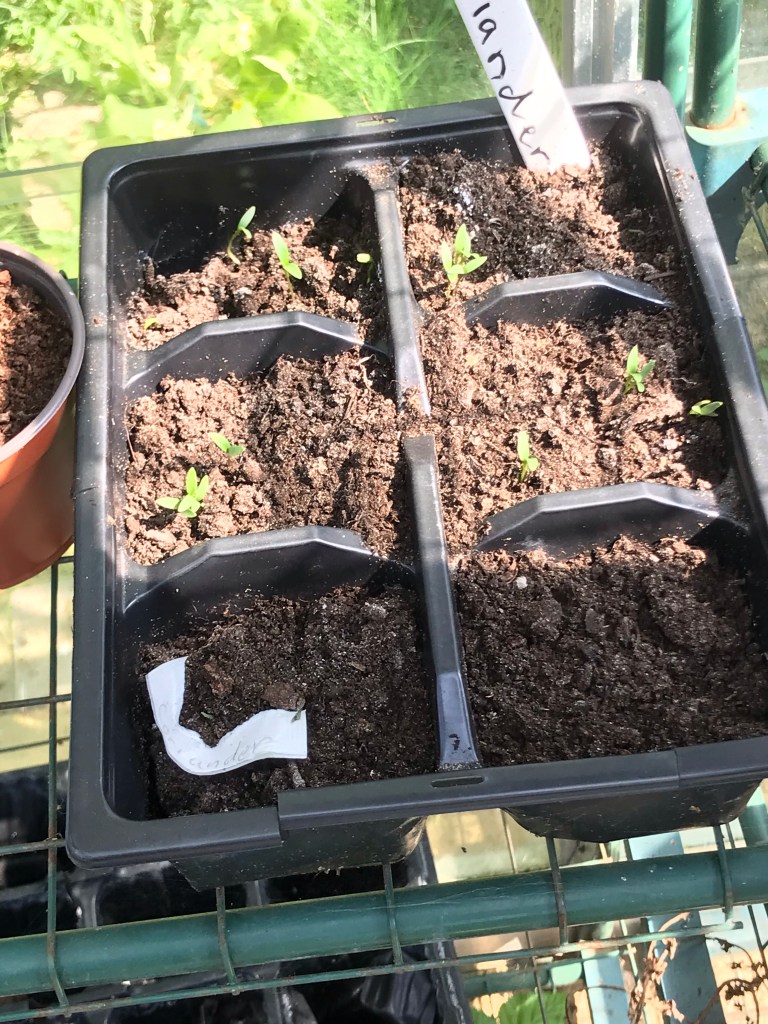 My seeds and planting in the greenhouse are starting to look promising. I am such a newbie to this, even when we lived in St Albans and had a long strip of a back garden I picked up already grown plants when I fancied them. Life has changed – we have a greenhouse – and despite growing up with a fanatical tomato grower I haven’t really picked up his knack, and I have yet to produce produce.