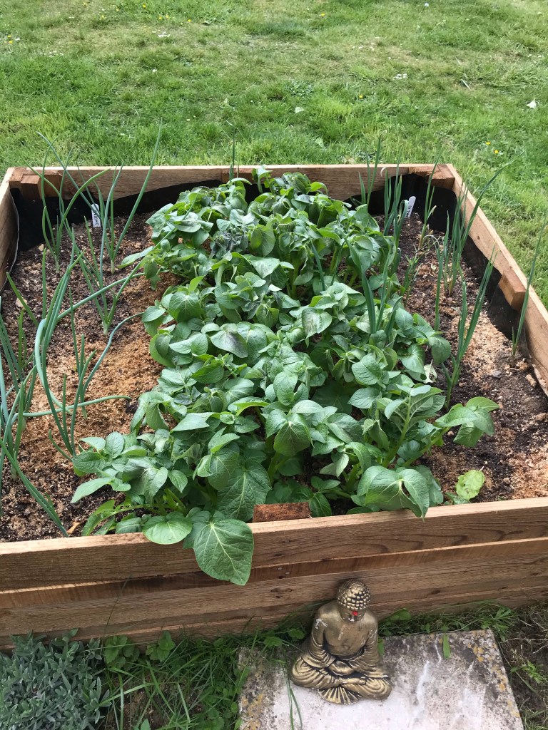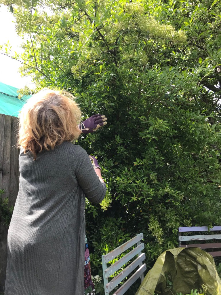But it spurred me on to clear another neglected corner by one of the apple trees. I got crazy with the secateurs excavating and stopping a prickly bush and some privet from hiding the tree. I did get stuck at one point and called a rescue cry. On being told there was a business call pending (and he was sans gloves) I sent him off after pulling out the larger cutting so I became safe again. The tree is visible once more! However the brown bin is still over full and collection starts on Thursday. It’s only Tuesday and I have filled the bag we got a tonne (?) of topsoil in…