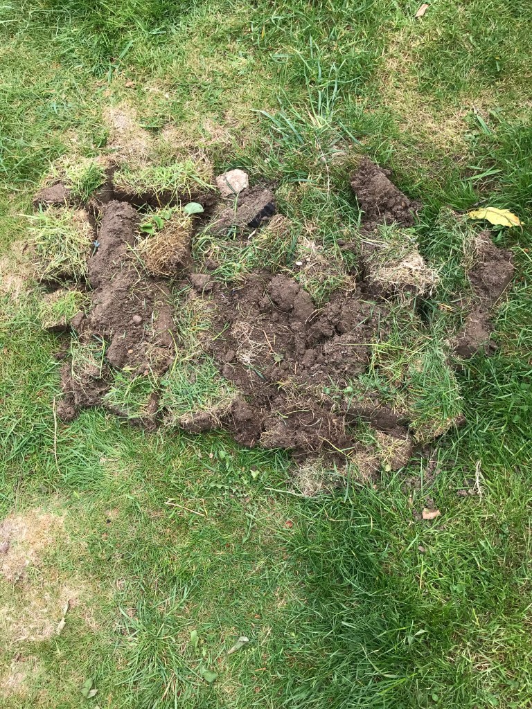 I’ve made headway on the clearance of grass for the slabs we got last week. I started with the idea I’d do lots at once but I’ve realised I don’t need to kill myself. I want to dig up the couch grass so I’m digging big chunks. We want to lay the slabs on sand with limestone to fix the slabs but allow the mortar to stay porous and to stop water from pouring/or puddling by the house walls and the french doors.