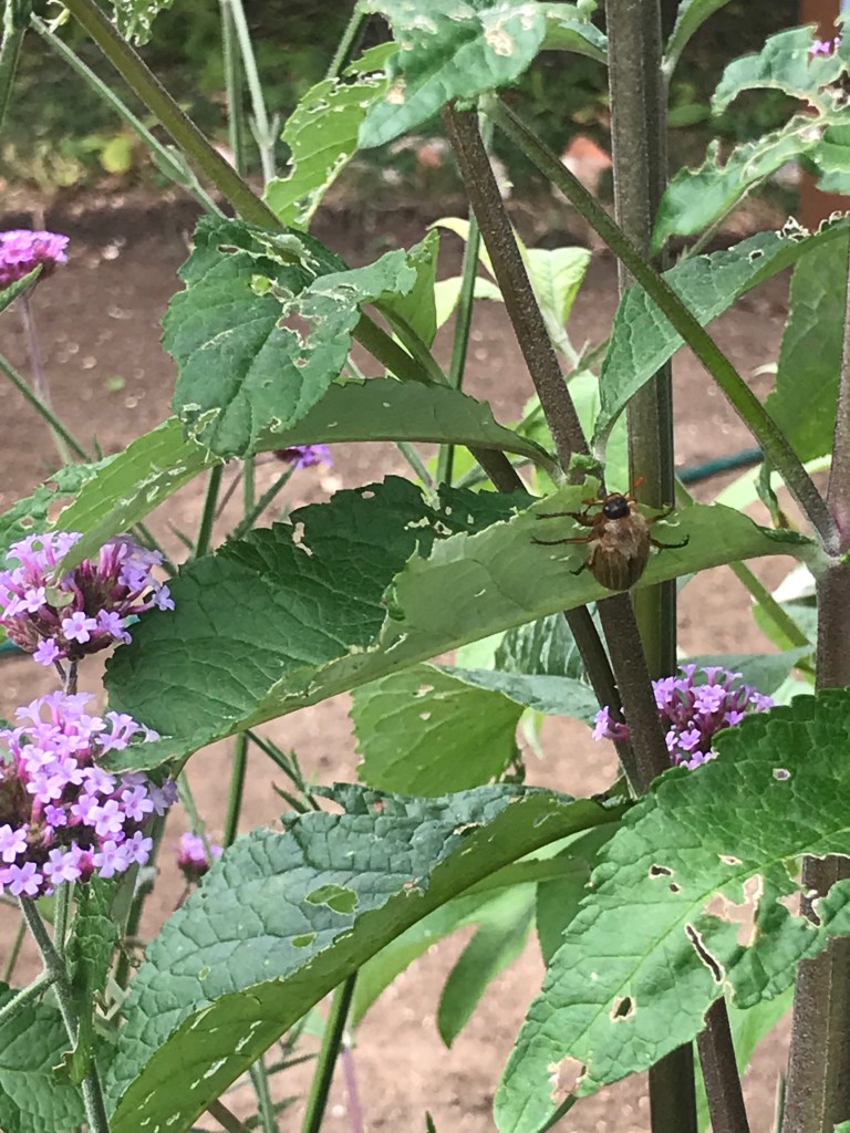 Actually I lied! But I have discovered another horror! And we identified this new terror after it had chewed it’s way through lots of buddleiha… and I spotted the leaves first, then the huge beetle which was identified as a cockchafer beetle or a May bug. They will eat trees, bushes and flowers! The larvae grow underground and eat roots then the bugs emerge round about now. Eek! Not what I wanted to hear. I honestly don’t want the adult eating my garden but I am not going to go out and exterminate them… catch 22!