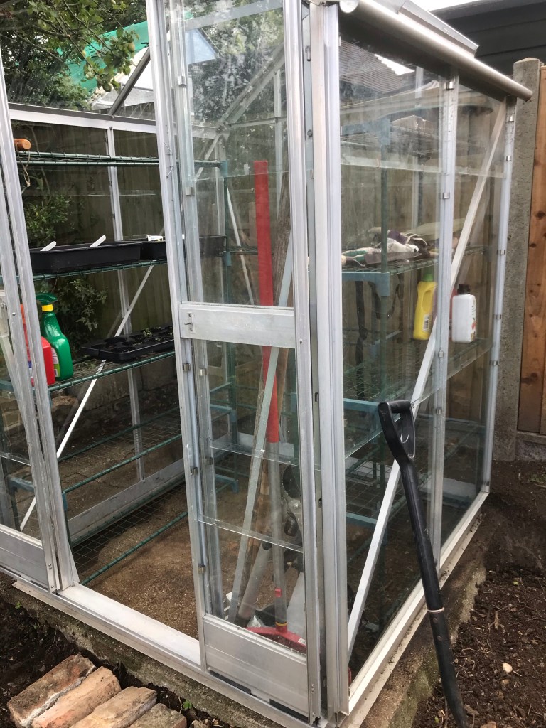 Like housekeeping only in the fresh air! Excitingly the Perspex ordered for the greenhouse arrived tout suite and in a day the ‘glazing panels’ with shatterproof and appleproof qualities have been inserted. The greenhouse is back in action and tidy! Lots of pressure washing has been done and decisions about steps into the greenhouse are in place.