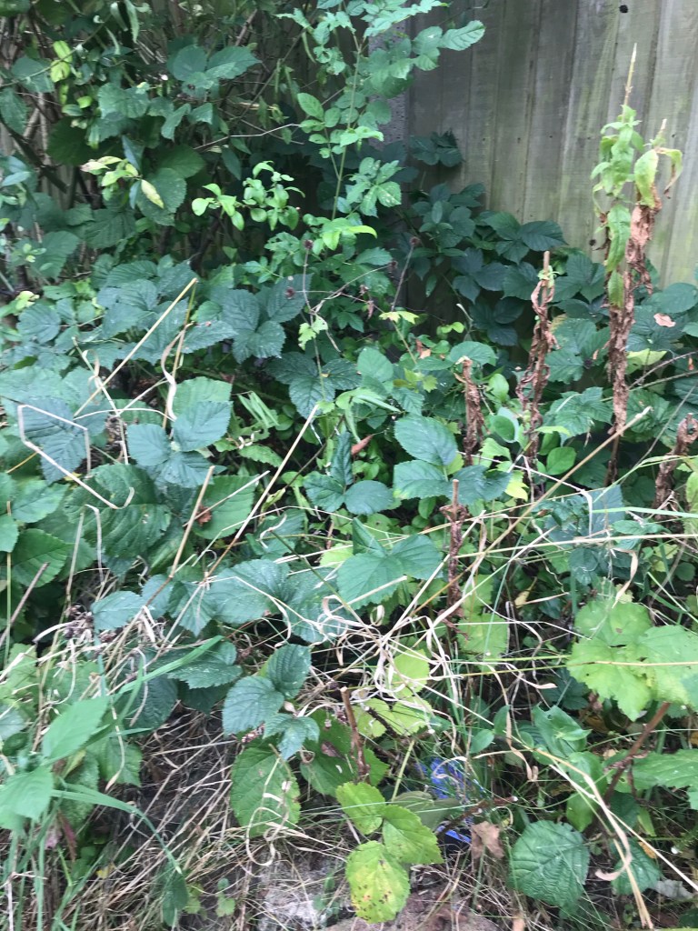 But going back to the garden and thinking about removing all the stuff I dislike, so much that I liked about the garden and was going to keep (the horse chestnuts being key here) have had to be removed and it’s really changing what the garden looks like. The grass that grows (wildly) is largely consistent with wild grass, and I think couch grass must have several cultivars? Some of it is wide leaved and some is very thin. I yanked out lots of the thin stuff today but brambles and wild roses grow through it too, as well as the weeds with fluffy seed heads (not dandelions). I hoped that we can perhaps reclaim my older daughter’s flower bed which is wild but she likes the biodiversity and her tree (not planted) as well as the orange gladioli. I will keep at the weeds in it however though I need to find some tougher gloves! Shall I change my blog to weeding within limits?