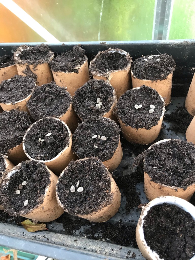 I went out with some of my seeds from China/the Far East (?) to plant them into greenhouse trays. They were largely passionflower and poppies as far as I remember and they were bought through the online retailer we shan’t be patronising over Christmas in a bid to help local/national businesses.