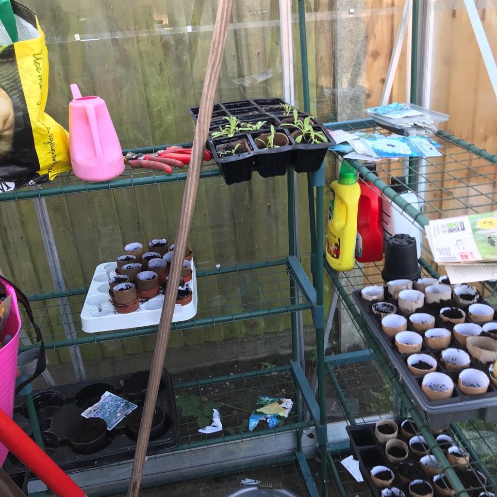 I don’t publish many pics of me as I’ve said before but it’s a resolution I am determined not to break. Lots of people do zooms like it was second nature so here goes. We are not editing out the messy bits of planting all those daffodils and things yesterday. I can still smell the rosemary in the centre! But the tray wasn’t punctured and I have a feeling we may have to remedy this if the rain comes on…