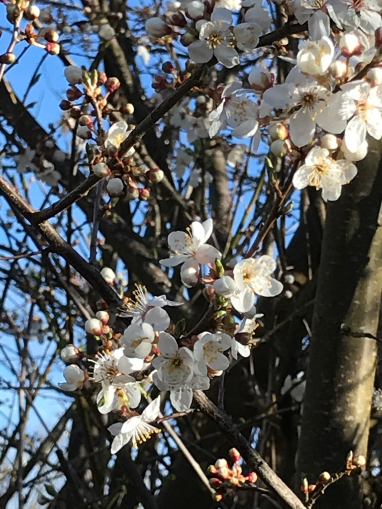 The blossom is out on the hawthorn tree I pruned last week and it looks gorgeous. I saw pigeons rooting around on the fence post I cleared of Ivy. I just hope they don’t nest! It’s about to be the ‘stop pruning’ period so should I run out and clear the last bits? Or bake… Toss a coin!