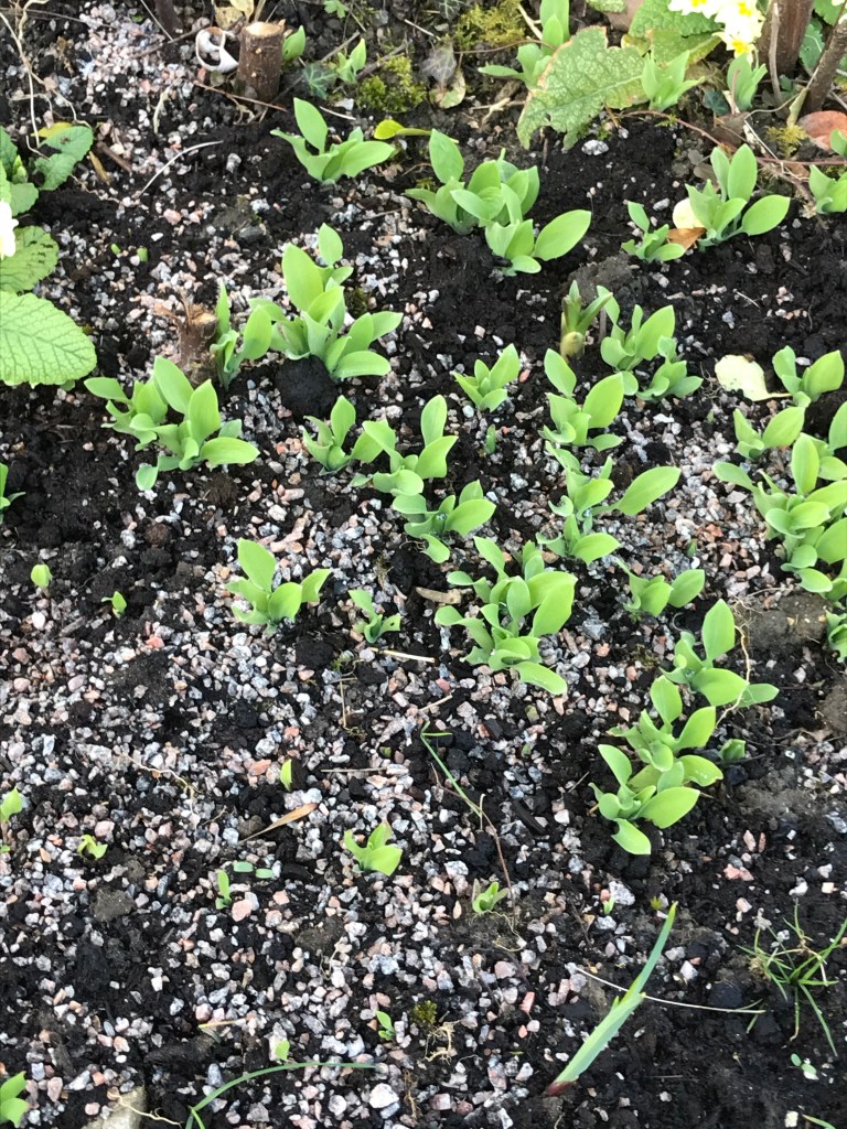 It is actually gorgeous outside, if a little blustery. Reports are in of bins and greenhouses blowing over, but fingers crossed we haven’t added to the litter anywhere. Our plants are filling me with excited anticipation as there’s a lot in bud. It looks like the alliums will be plentiful and the areas I’ve spent a bit of money on are coming into their own. Colour is appearing all over. Little blue flowers!