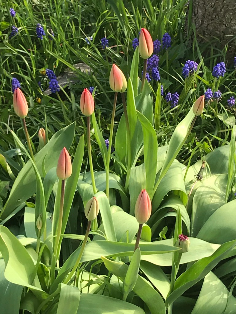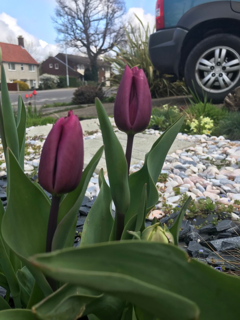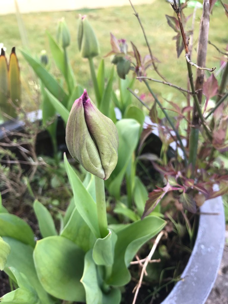 So maybe we don’t live in Amsterdam or have windmills in the garden but we have a good few tulips about to bloom! The daffs are dying back. I want to chop the heads off. I sometimes do but it’s maybe frowned on in gardening circles! Hey I can kill off at will? It’s my planting! And the topsoil and timber is here! All happening today!
