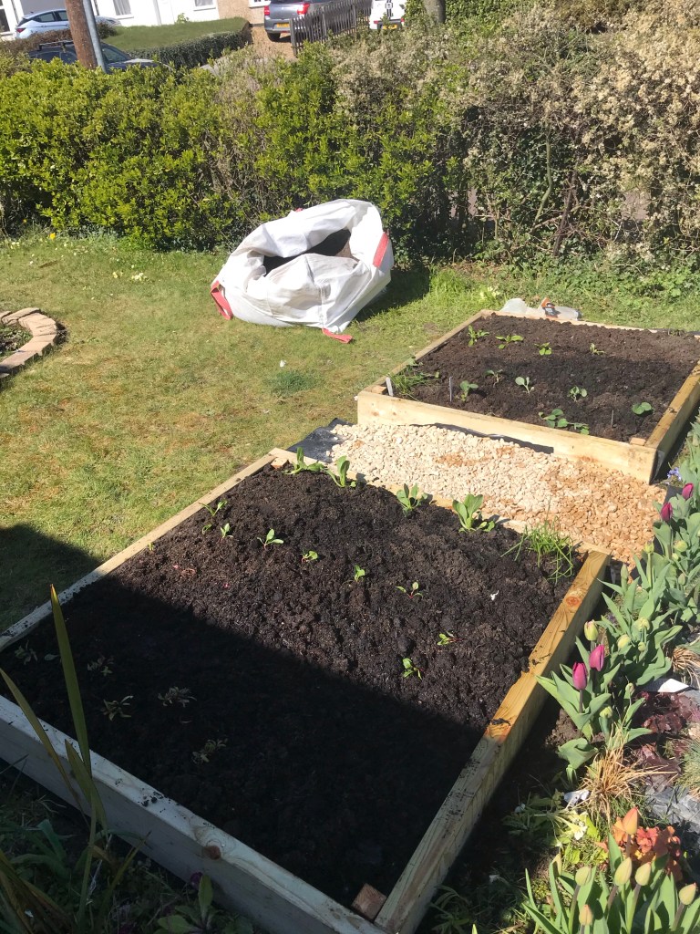 It’s been lovely out of the wind today! Ive planted lots of veg! From seedlings I got from Gilly yesterday, and bags I bought in preparation on trips to garden centres, I planted garlic, onions, chard, cabbage, spinach and beetroot. Wow, if these are successful I will be feeding/giving to passers by for weeks.