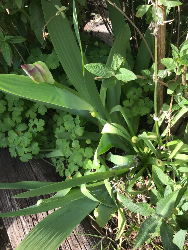 I’ve pulled a few more yellow perils but there are plenty of overgrown bits to mollify the bee lovers. There is blossom aplenty on the oldest apple tree and less but more bauble-like buds on the greenhouse over hanger. We might need to source a sail-like hanging to protect it this year. Ideas of shops for this please!