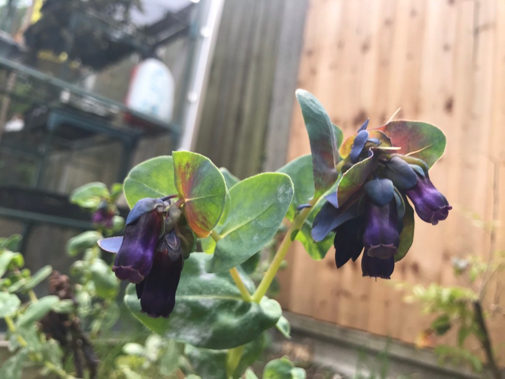 I added some bright pink ostespermum and some hemerocallis, and a zantedeschia. I am definitely rocking a dark red, deep purple and orange spectrum as well as as many blacks as I can. Am I a goth gardener? There are things appearing which I have to say I’ve probably planted, but they are slightly different to my expectations! The red acer by the greenhouse is accompanied by a plant with very gothic greyish purple flowers but I am going to have to PlantSnap them to confirm which plant they are.