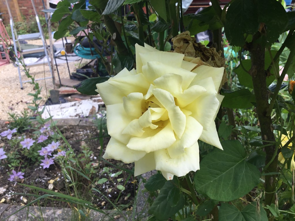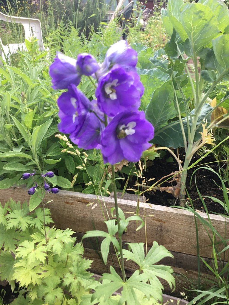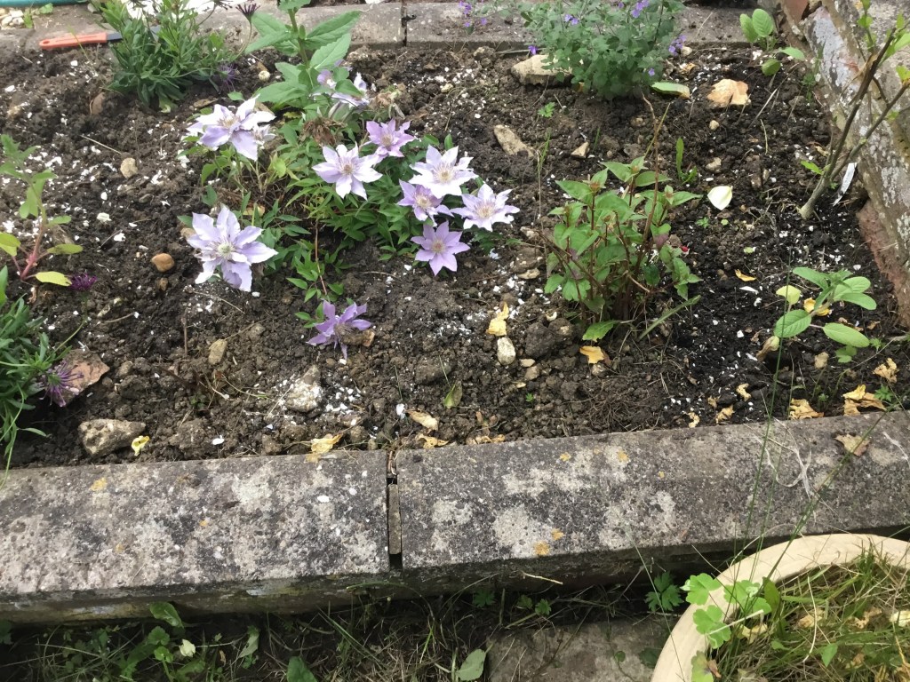 There is a load of weeding always being the first thing I need to do. There is also watering. It’s a definite June heat now as the delphiniums have flowered, we have one clematis flower and apples are starting to appear on the apple tree. I saw so many things popping up but bindweed has also appeared in that bed now the tulips are finished. I’ve deadheaded the roses, which took a battering in the storm last week. I don’t know if we’ll get a second load of buds but the advice to deadhead did seem to imply it might happen. I’ve planted loads of things in the bed I cleared the daffodils from.