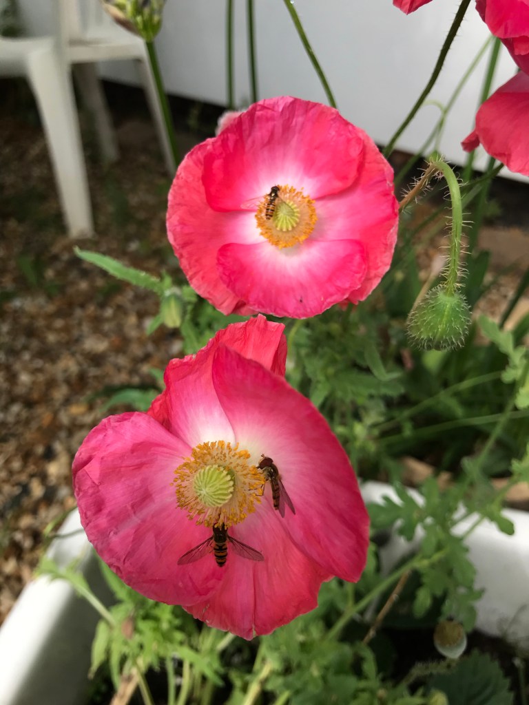 I have done a lot of weeding. I probably should get the lawnmower out. The ants in the front won’t like that. But needs must. There are a lot of lovely flowers open at the moment. Which there are a lot of little beasties taking an interest in.