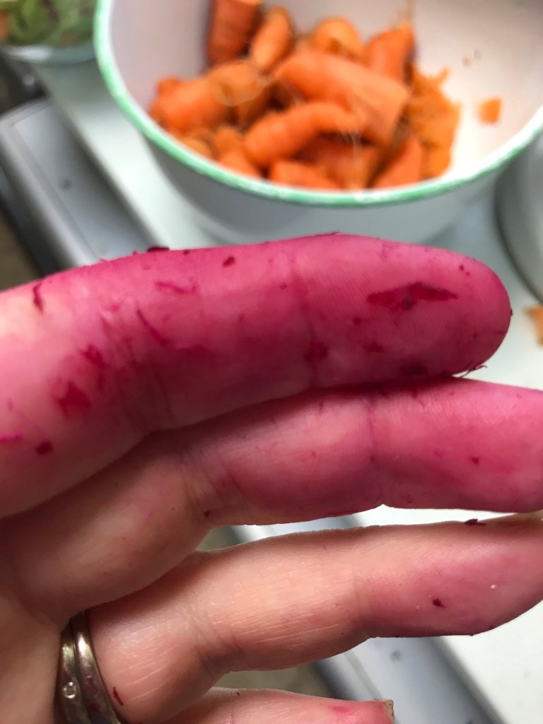 Veg Up Front is a new initiative I joined. We’ve set up the barbecue on the hottest day this year, and salad has grated beetroot and chard leaves in it, from the front garden as well as some carrots from our veg beds out back. I love the curly shapes of home grown carrots and I now know they need a sandy low compost as they grow round stones or gravel.