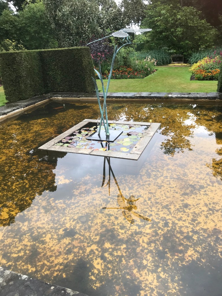 The garden is also laid out in regions and as it was late summer the colours were rich oranges and blues. There’re some beautiful garden rooms, and routes through vine covered arches. As we arrived after the severe rain, lots of the garden had shiny and glistening puddles, but it just added to the beauty of what we were looking at.