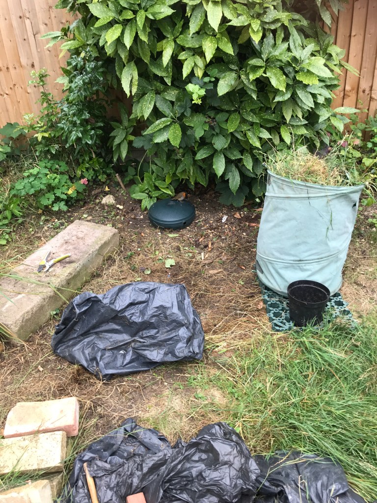 The rat noises have quietened, my insomnia is still apparent, and I have a new sieve made by my other half to riddle weeds and stones out of my soil. It’s hard bloody work though! He has taken the dog out while I continue! Why don’t I like Astro turf and plastic edging? Could lay this garden out in minutes! I was told to do exercises after my surgery a few years ago and riddling is making those muscles sing! Blimey!