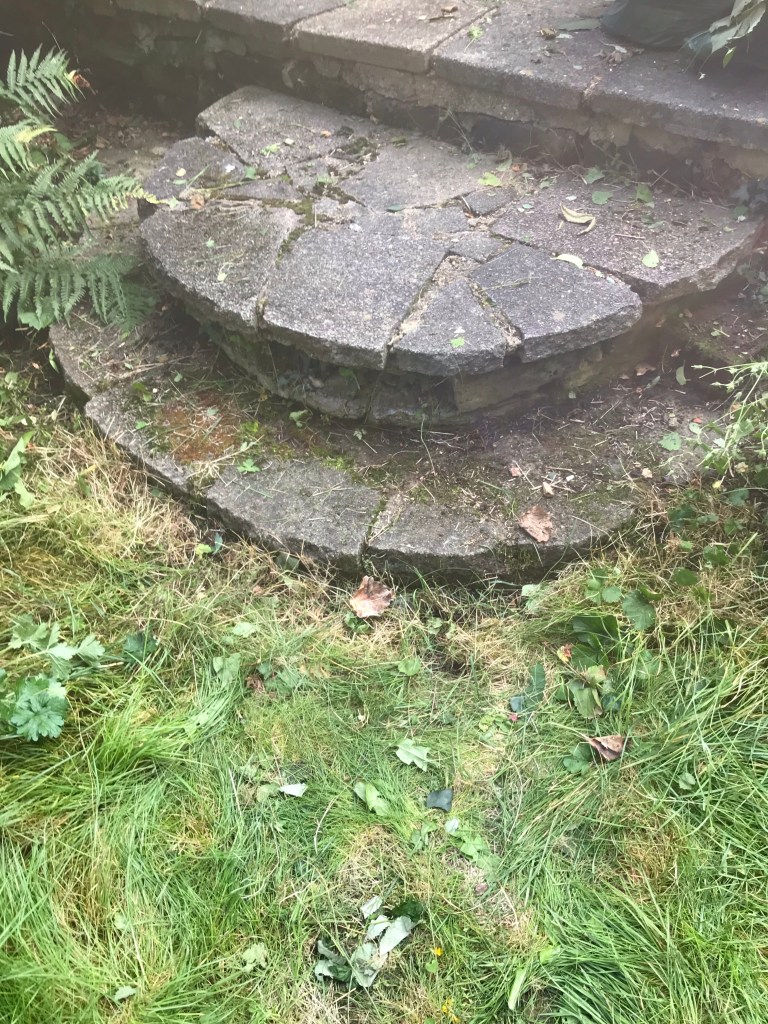 And Sunday was spent in Essex clearing brambles, bindweed and ivy among other of my favourite weeds from my mother-in-law’s garden in Essex. We filled about four rubbish bags so not inconsiderable and cleared Virginia Creeper from the patio, and excavated the steps from high grass. I have sore hands now but feel tired in an exhausted from hard work kind of way.