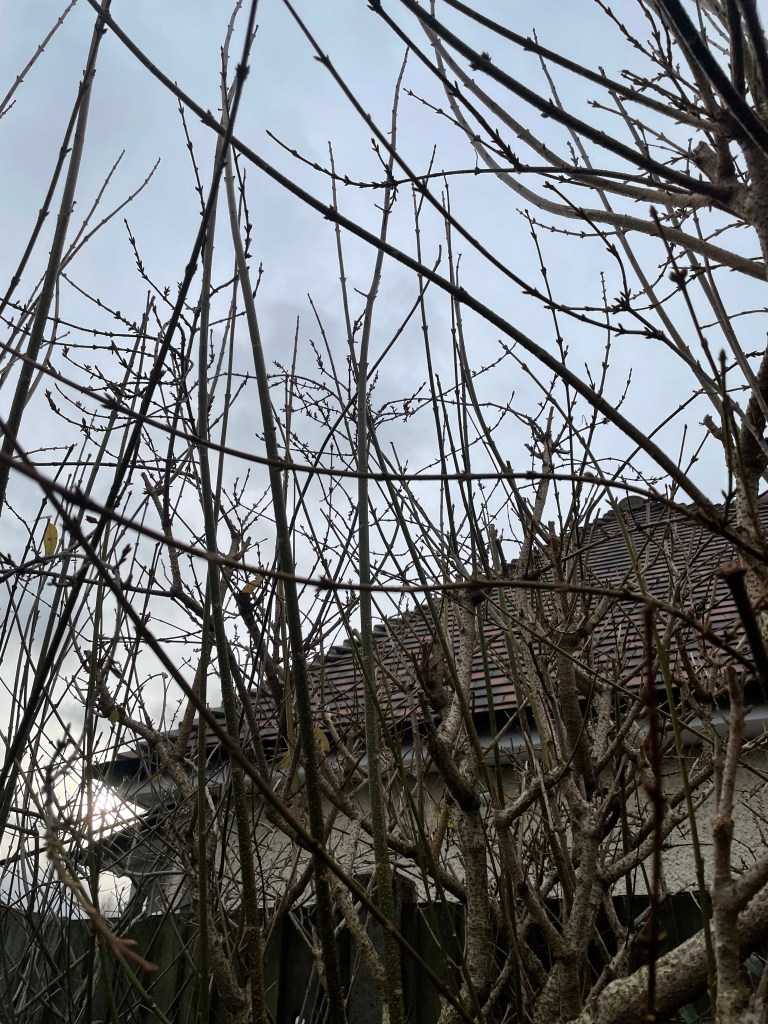 It’s going to turn cold tonight, after the warmest New Years Day on record. So I decided to fill the green (brown) bin with pruned tree. I have terrible wheezes if I try to cut this Laurel in the spring so it seemed sensible to do it now but after a couple of hours I am feeling a tickle. The tree is rather old so part of it snaps off without effort but the new growth goes vertically without shoots. Probably it’s been cut at the wrong times but it can sprout monster growth if we neglect it. But the wheezing it causes me are reason enough to try to eliminate it. I don’t think my neighbour will mourn it if it disappears either.