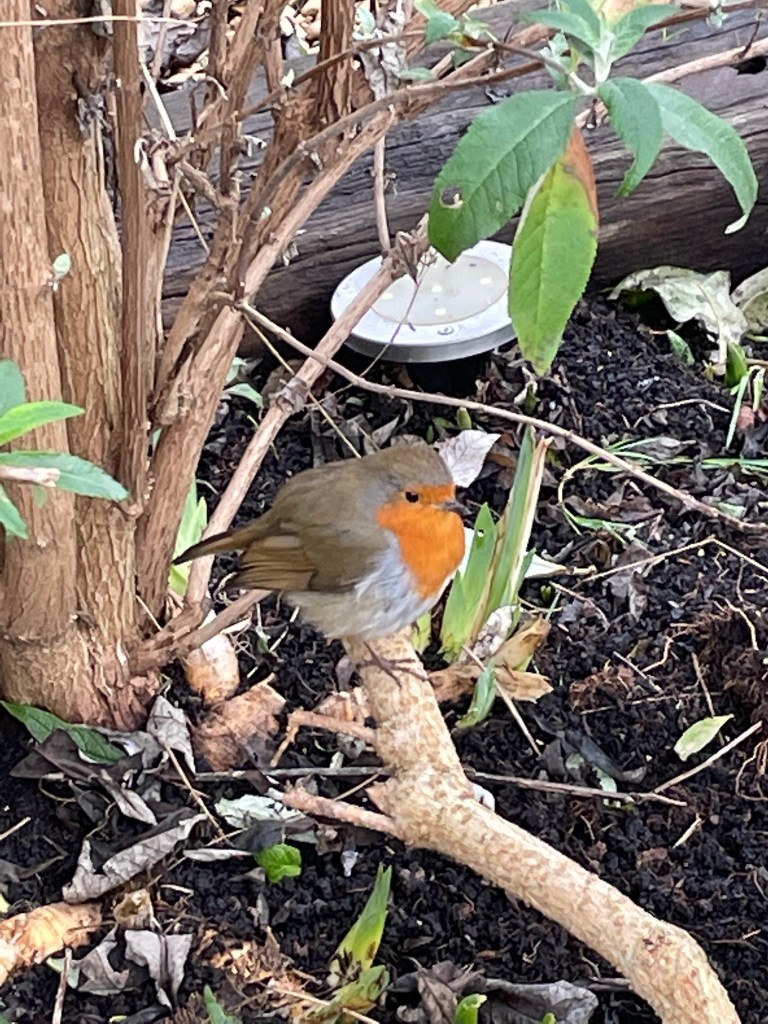 Actually having seen some wildlife news this week Red may be acting with others? He looked puffier and had a marking on his chest when he swooped in on the worms I lifted when I pulled out some couch grass.