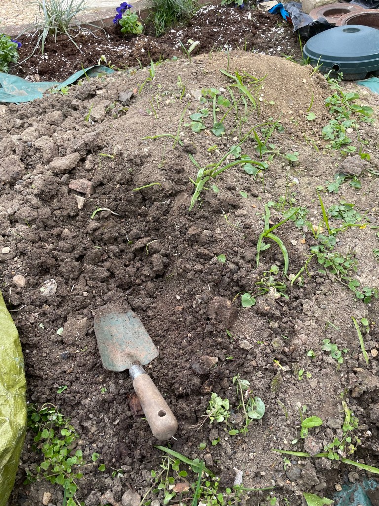 It’s going to take a bit of time to move the soil and eradicate the dead grass under the tarpaulin but little and often will see it done. My doctor advised it, did I say? But it’s in between days of work/lunch breaks I can maybe do little and often. The soil I’m moving can also be enriched as I go by filling it with manure, manure pellets and grit. I’ve also added potting compost. I have plants to plant!