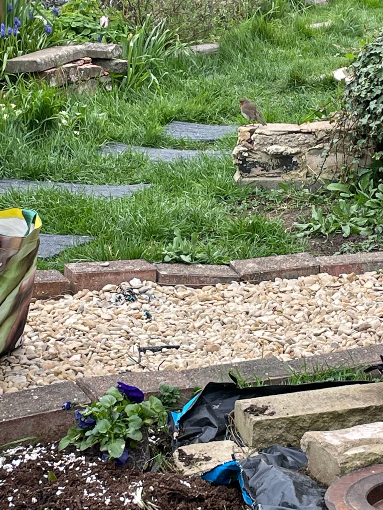 But it wasn’t to remain nice as rain after five has definitely stopped me in my intended tracks. The mud pile will be difficult to move if it gets gooey… But it’s worth continuing if I’m managing to clear more? Or will I overdo it? Yes I did! Visited by Red as it was nearly six and there were worms turned over with my twirler.