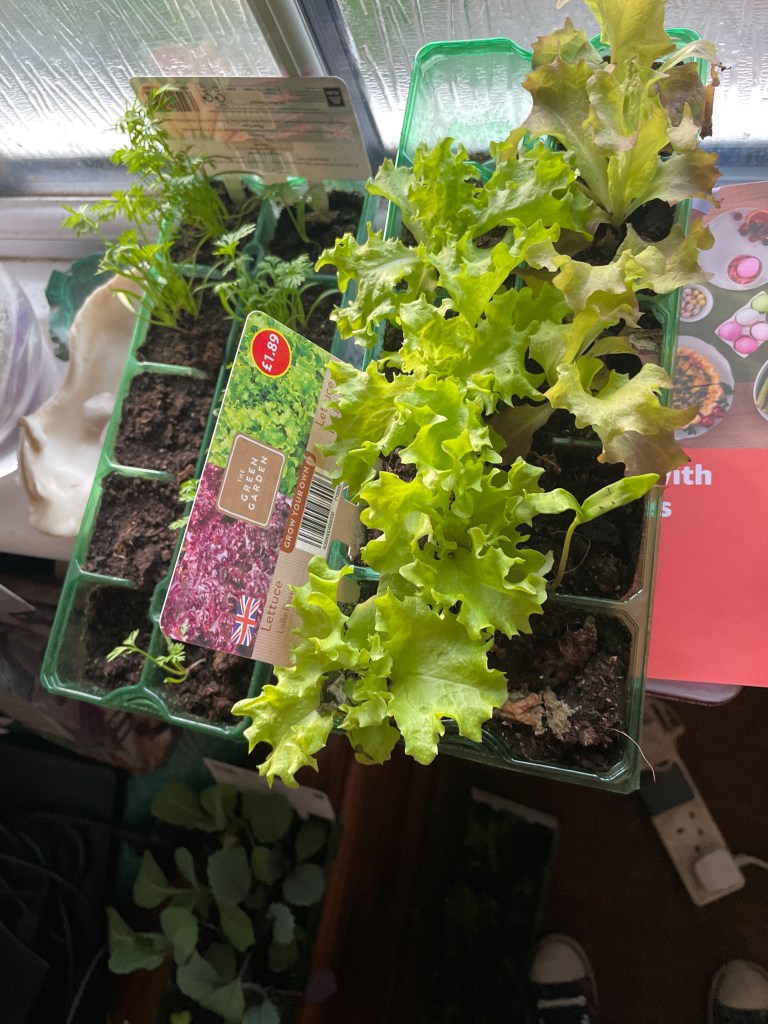 I went to a bargain supermarket and picked up some carrot, red cabbage and lettuce seedlings! I fully intended to use my seeds but time has escaped from me. I just cheated! I bought some rhubarb too yesterday and with some flowers to plant I need to be busy tomorrow.