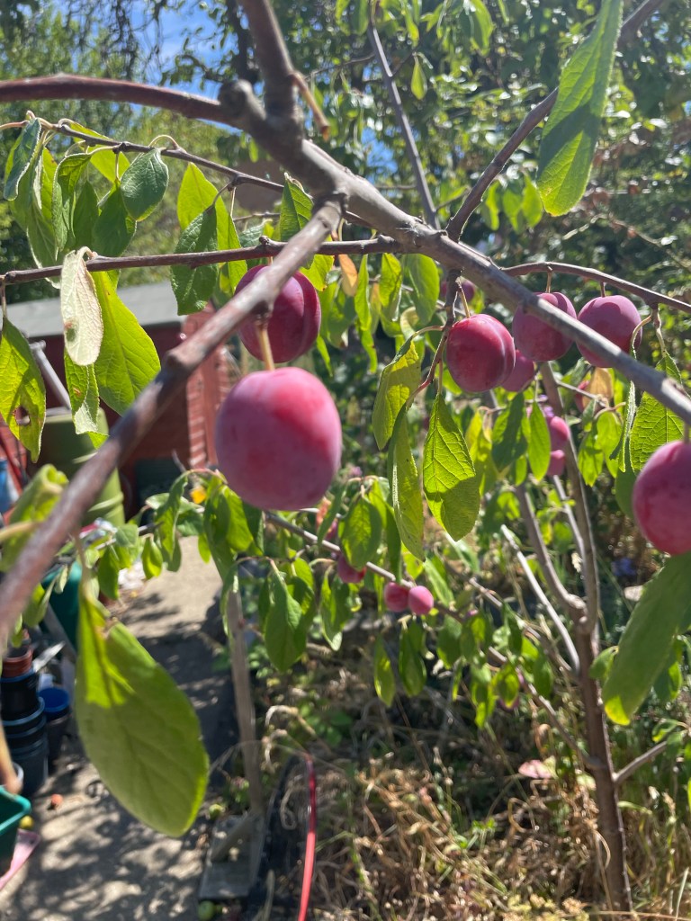 And the plums have suddenly ripened on my fiftieth birthday tree! Beautiful they are too! Plum jam anyone?