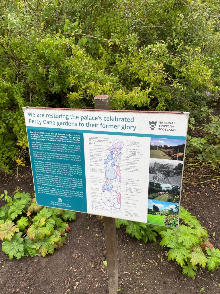 We stopped off in Falkland and visited Falkland Palace and despite a fascinating tour of the interior with amazing facts about the making of a Royal bed and the hunting parties, and a fabulous gift shop, the garden is under restoration and will be replanted in spring next year.