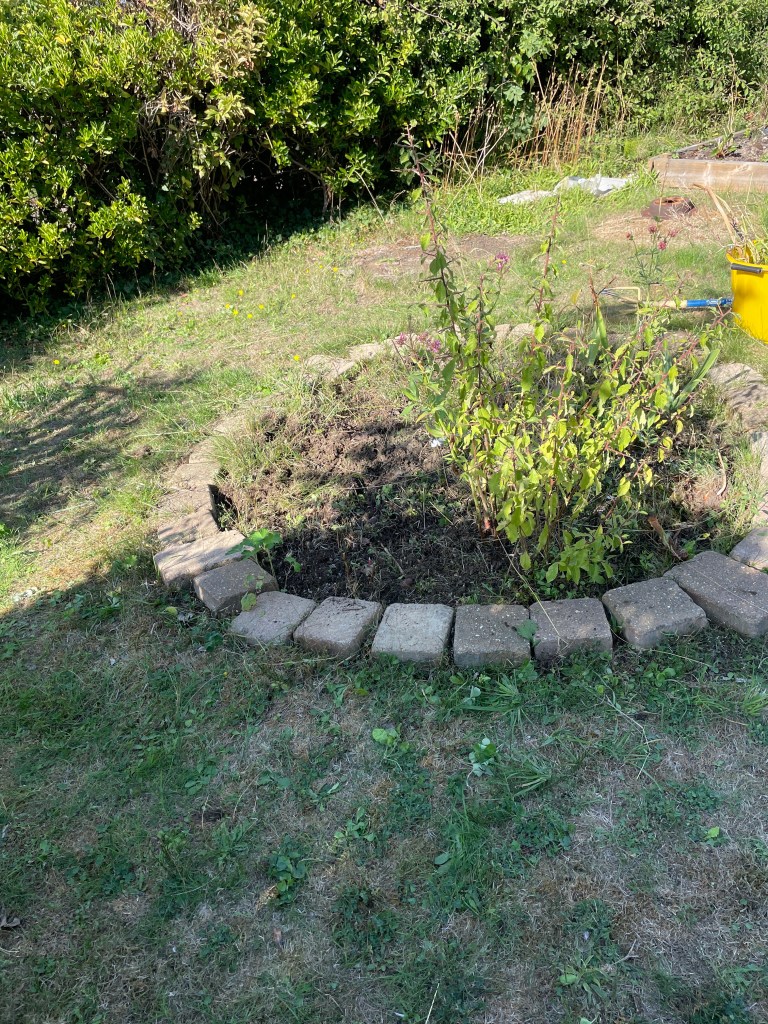 I have also attacked the front circle today! It has a lot of my least favourite weeds growing as well as suckers from the hawthorn hedge. At least that’s what I think spiky hedge is. We have lots of things with prickles and we discussed today whether it would benefit our compost if I was to put shredded bushes into the compost. Twigs won’t work!