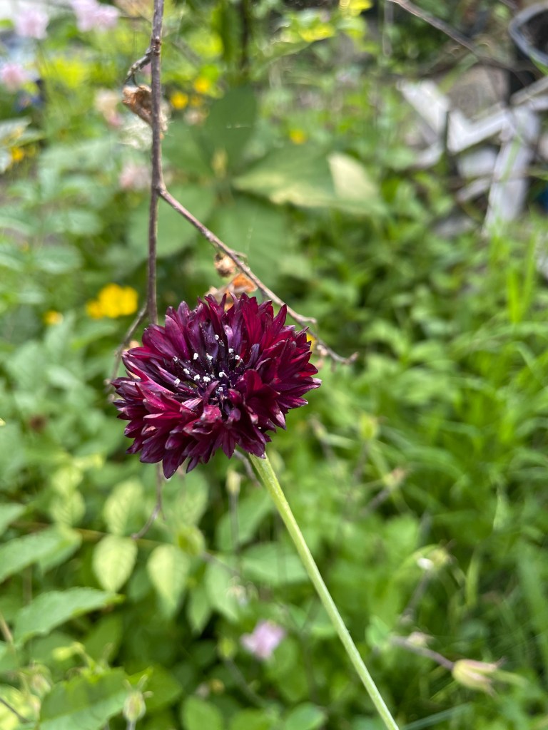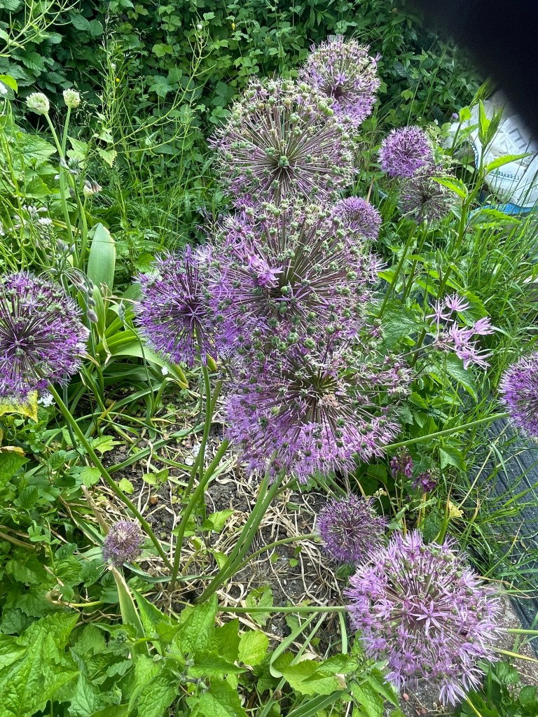 We had the best of home cooked food tonight and it was lovely and bright as the sun was going down. Best place to be for a barbecue and we managed to make baba ganoush, coleslaw and houmous with the barbecued chicken and minced meat skewer. A huge bowl of coleslaw and a mixed salad was a healthy addition. The sun was still hitting the table and flowers around the garden which i snapped while the last browning was underway.