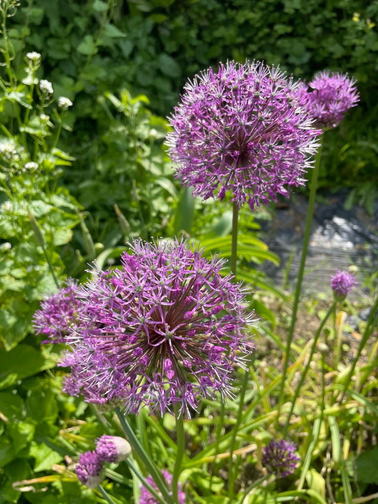 Lots of alliums are popping up all over as well as other things I have introduced, and things I think the birds have introduced. The snails are enjoying all my hostas unfortunately and certain trees are looking fruitful. Boy our plum tree is looking really abundant. It’s only May but some of the best bits are seeing things everywhere that are part of my interventions. Making my stamp on the place…