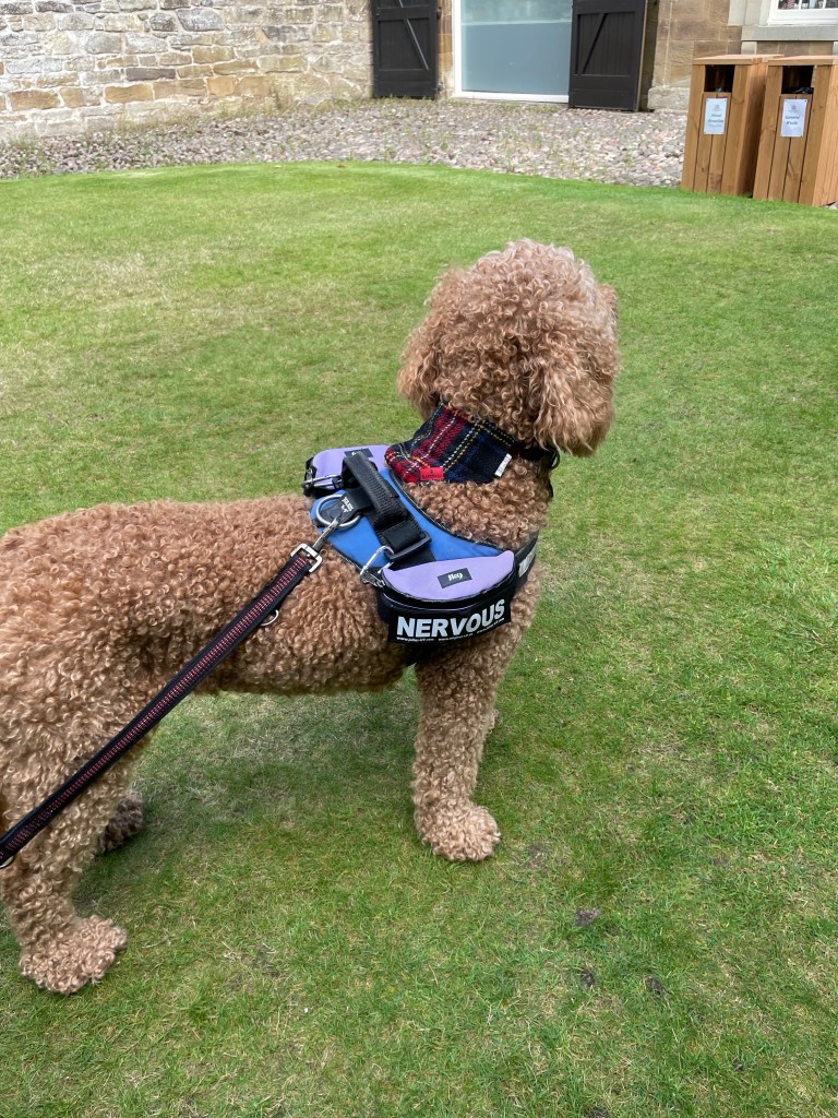 Walking our rescue dog, who we believe had never seen a beach, we had many conversations with other walkers. The ‘Nervous’ patches we got to attach to her harness were definitely a help for her. She is such a happy dog, though! And had some joyful romps with other dogs…
