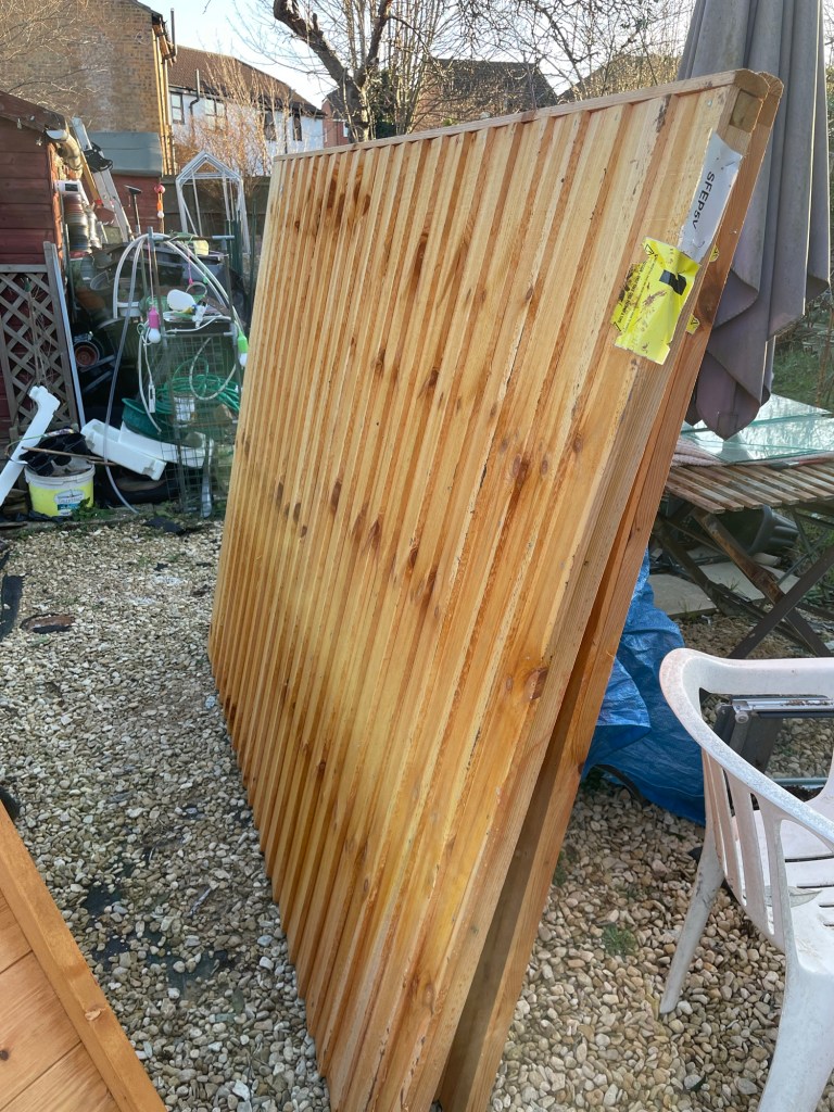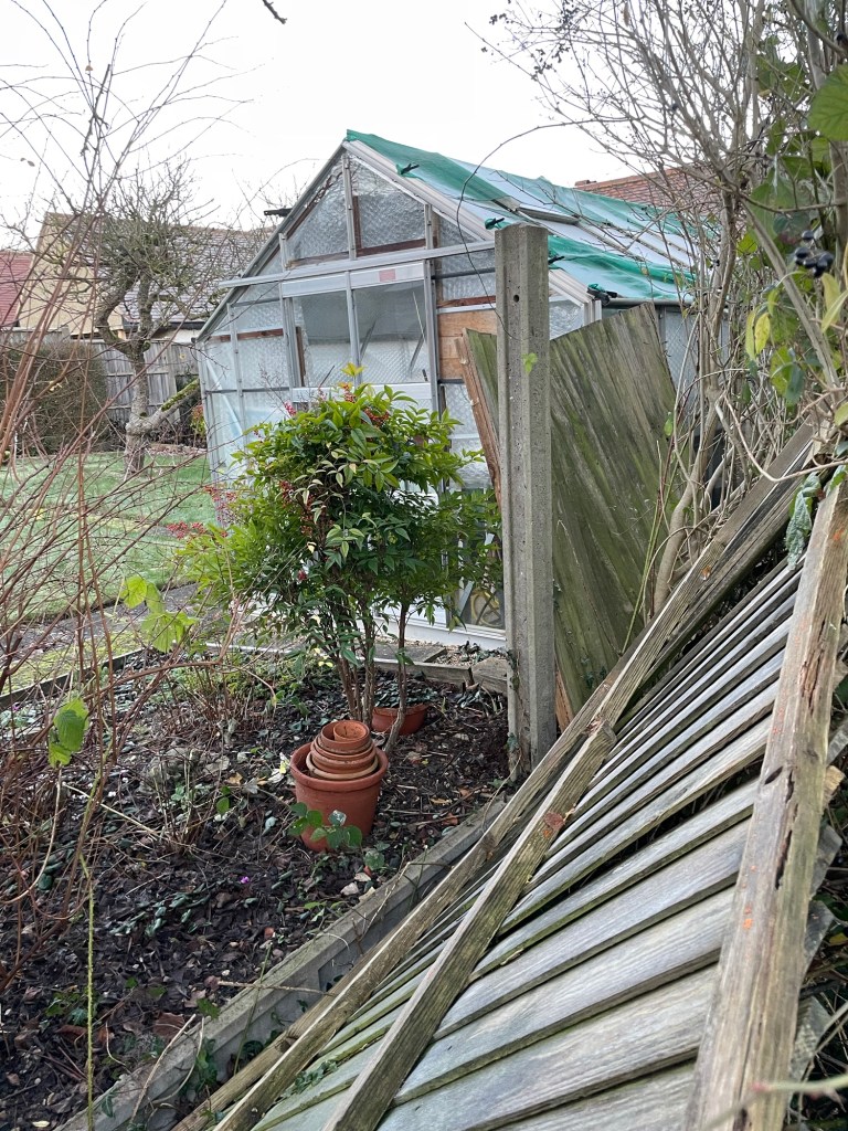 Unfortunately three panels needed fixing! Luckily not the newest ones! Well three new panels were delivered ten minutes ago. And the garden looks pretty messy! But we spoke to next door and she was happy for us to get it sorted. Our dog doesn’t need to go exploring…and we need to fix it before the potting shed goes up.