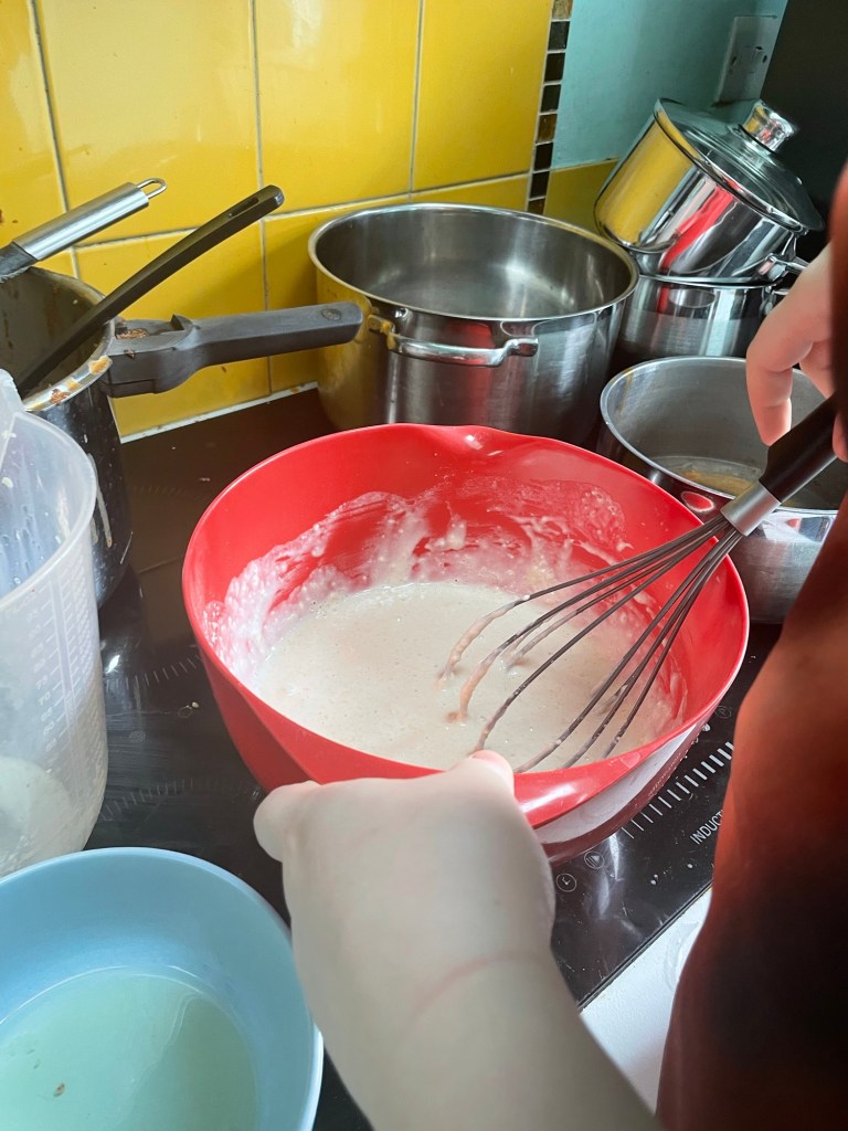 We did get out already with R going round the common and meeting and chatting with other dogs and their humans. We came home to a waffle-making factory in the kitchen which even the dog got in on with a waffle slathered with dog-friendly peanut butter. Amazing what you can get these days!