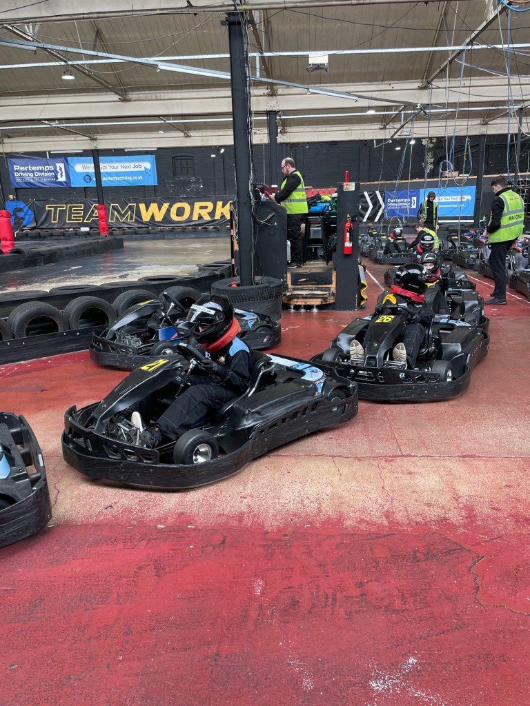 But after my brief stint of gardening, I took Squeaky to her birthday party at the local go cart company where, yes, I bumped into a couple of speedy carters, but I wasn’t the slowest! it was scary how exhilarating it was and I briefly worried about my driving home skills when I stopped going round and round and round and round… no identification possible with our face masks on!