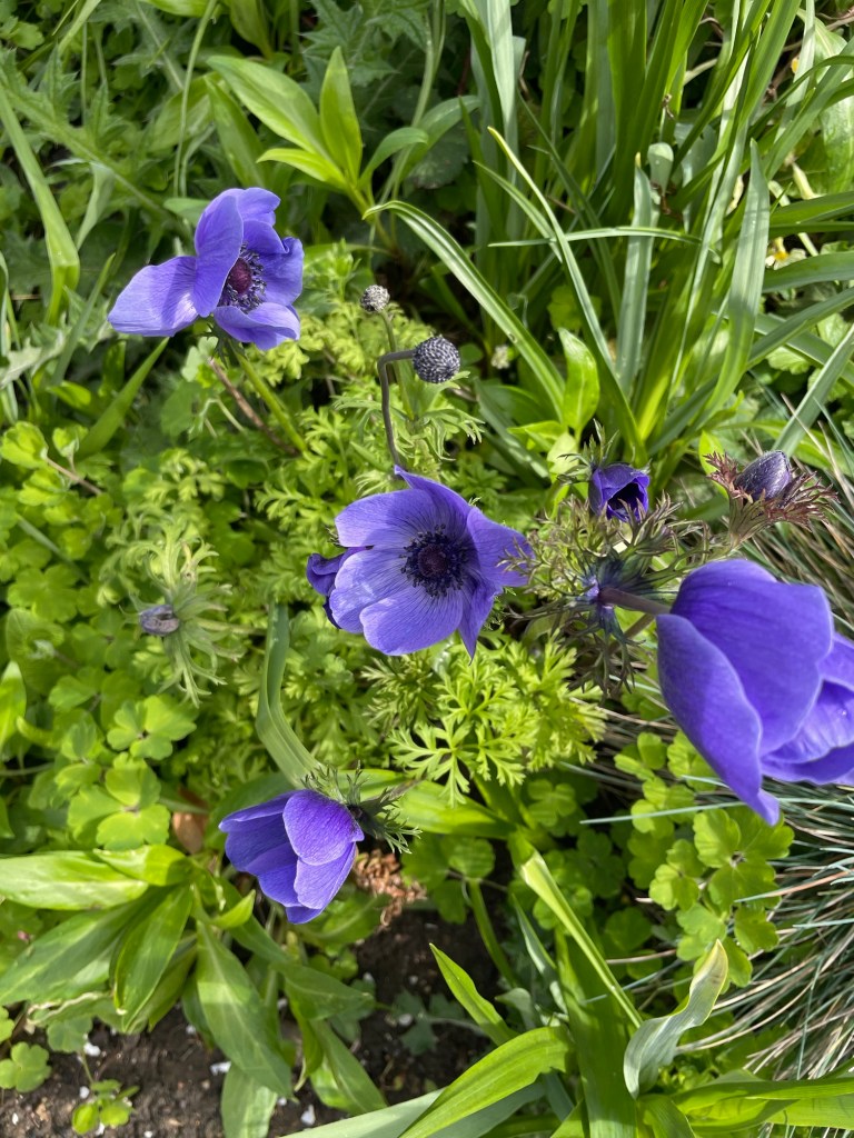 I am pleased to see lots of snakes head fritillaries in bloom as well as anenomes and the whiter daffodils I am more interested in.