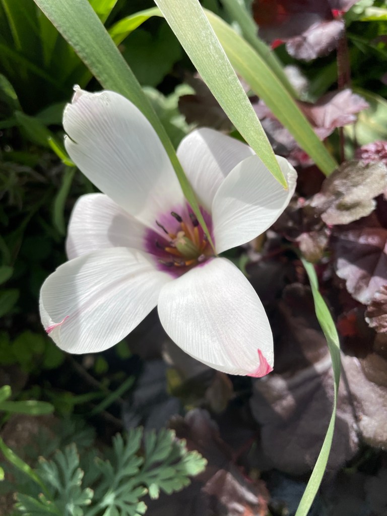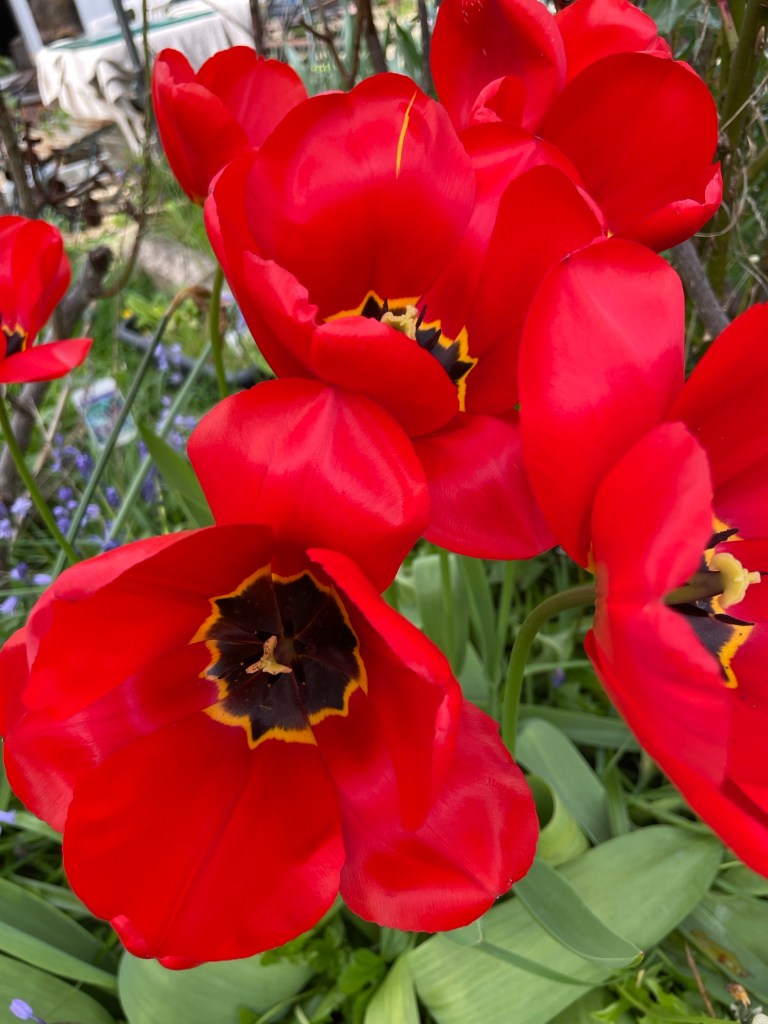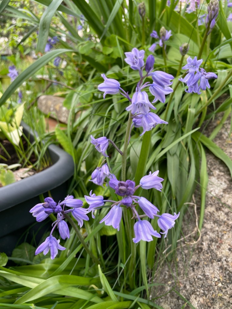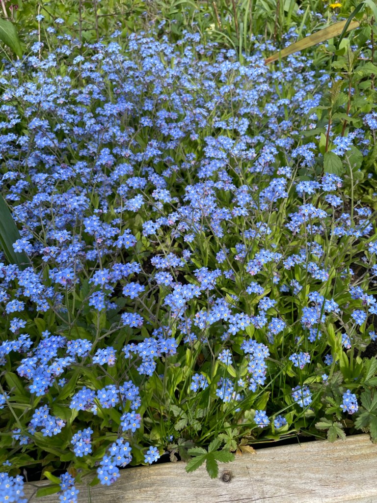 My garden is lovely today in the sun! Even the dandelions pop out and look great. Look at those fabulous so far unmunched hostas! The Veg beds are full of forget me nots and I have lots of Bluebells which I think/hope are the native ones rather than the Spanish!