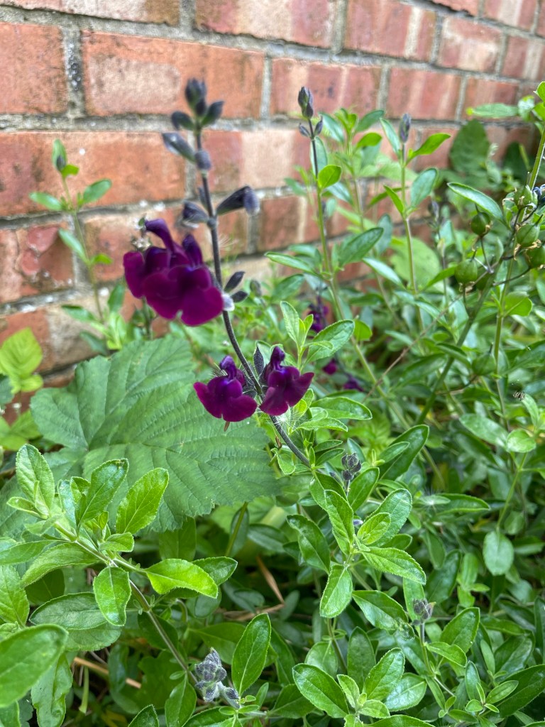 Salvia is appearing, with its signature smell of ‘Herb de Provence’. They are currently behind the trampoline so I can’t get close to crush them. These ones are deepest purple but I have ‘Hot Lips’ which are white and red else where that was really decimated by the droughts in 2022/3. I’m really hoping it might make a reappearance.