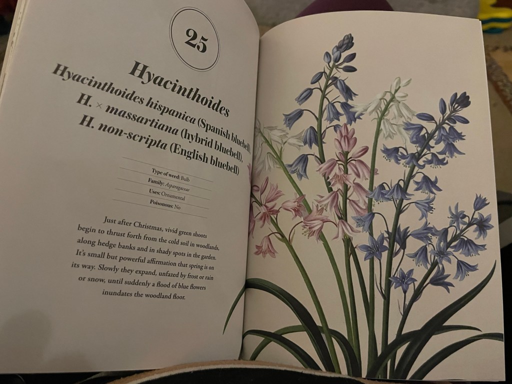 There are fifty plants to study and work on understanding their purpose and argument for maintaining and it’s quite humbling to read all the facts that have been compiled from the Latin names to the local and nicknames of the plants.