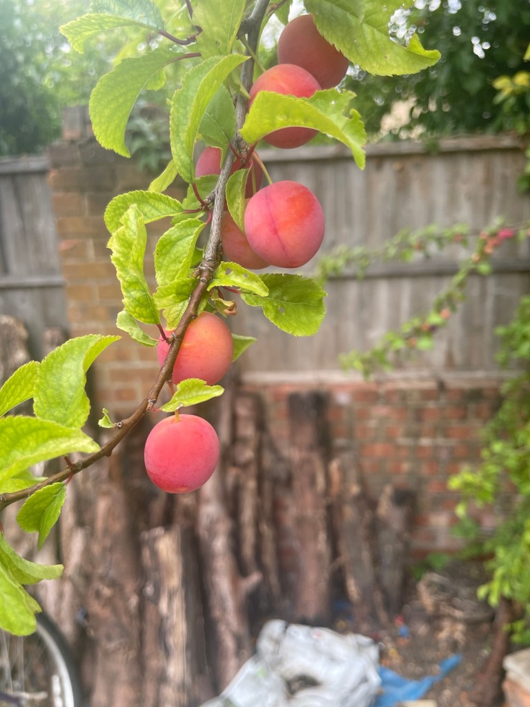 We did plant our own plum tree when I had a significant birthday during lockdown so perhaps we introduced a cross-pollinator inadvertently and our serious prune earlier this year, encouraged the growth of lots of fruit. Bring it on! Hopefully we can harvest before they feed the wildlife running between the back gardens. (Foxes, cats and miscellaneous animals have been seen by our rescue dog at ungodly hours of the night!)